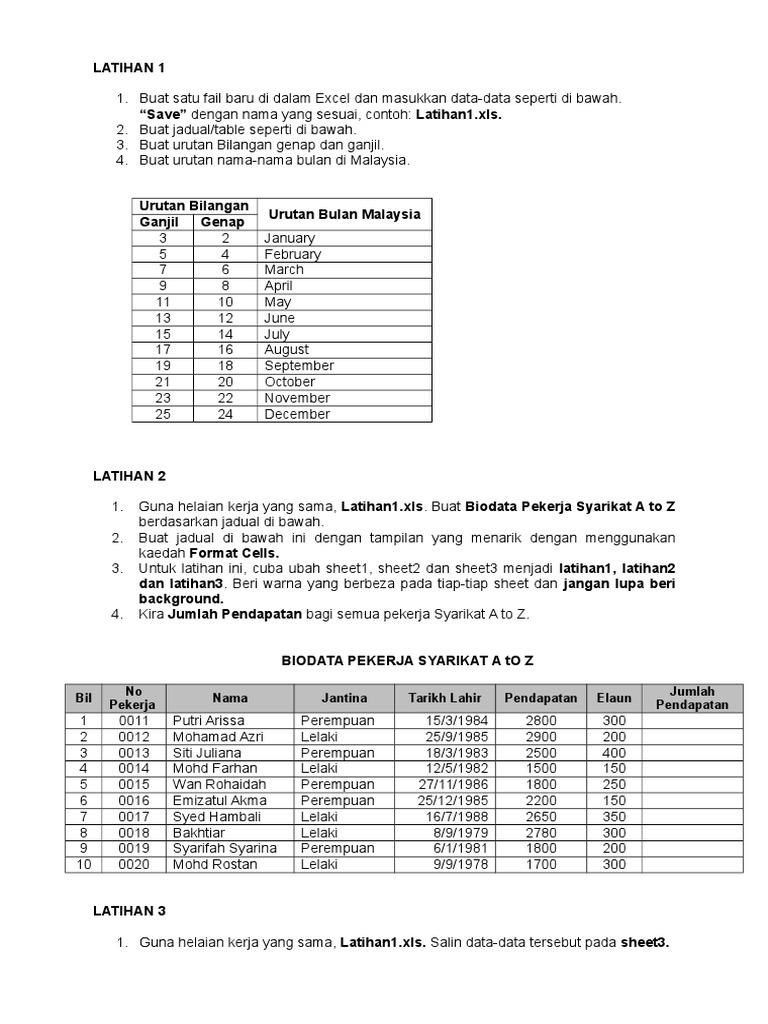 Contoh Soalan Latihan Microsoft Excel Selangor V