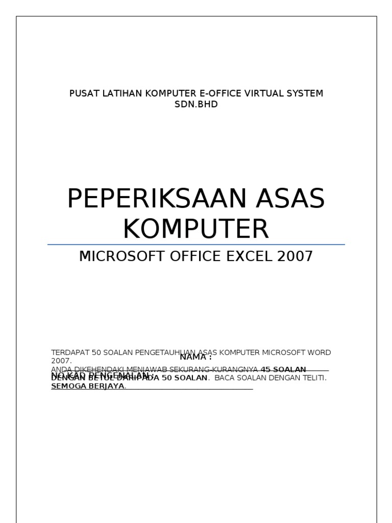 Contoh Soalan Latihan Microsoft Excel Kuora P